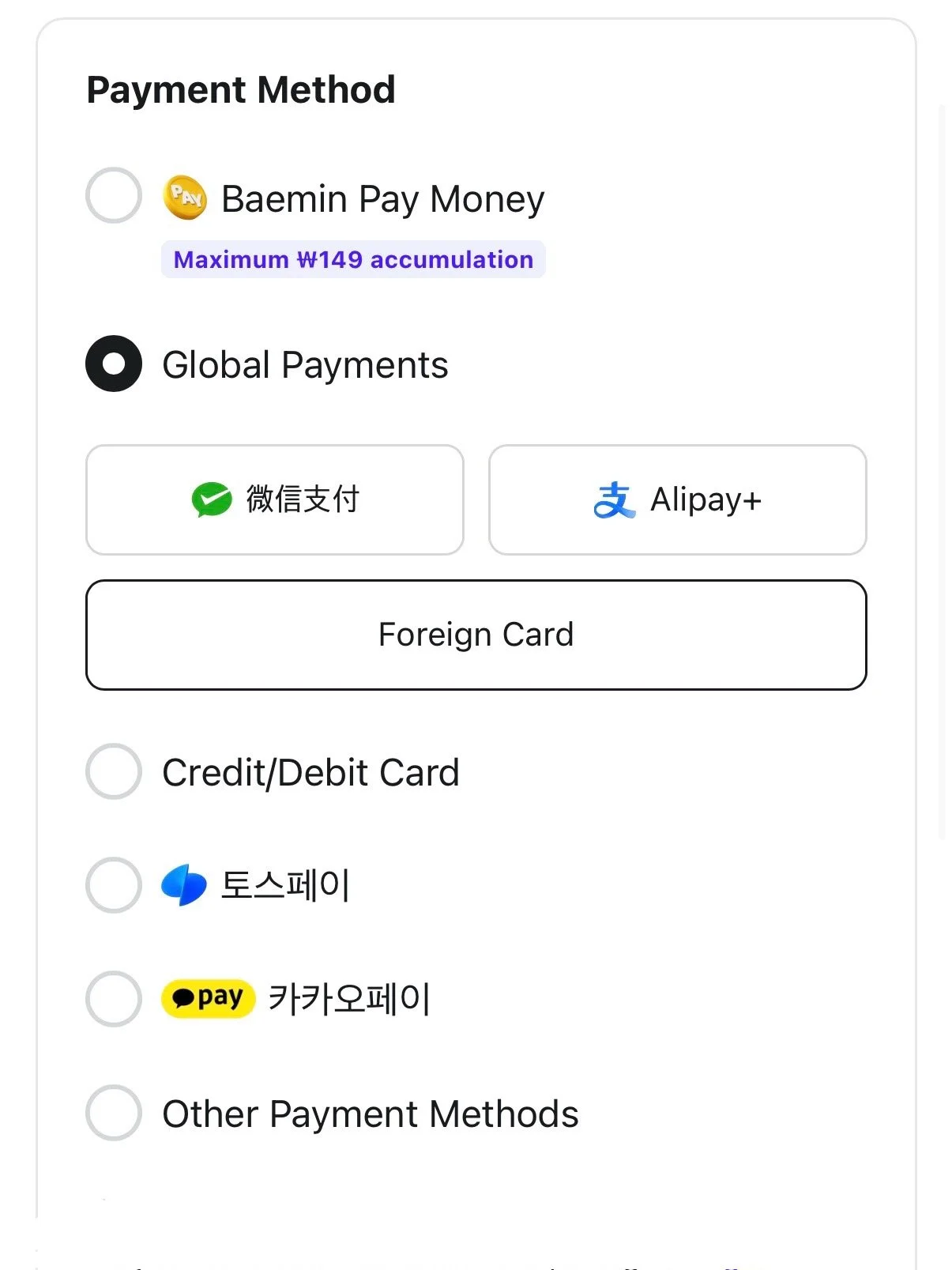 Step 6: Select Global Payment and Pay with a Foreign Card