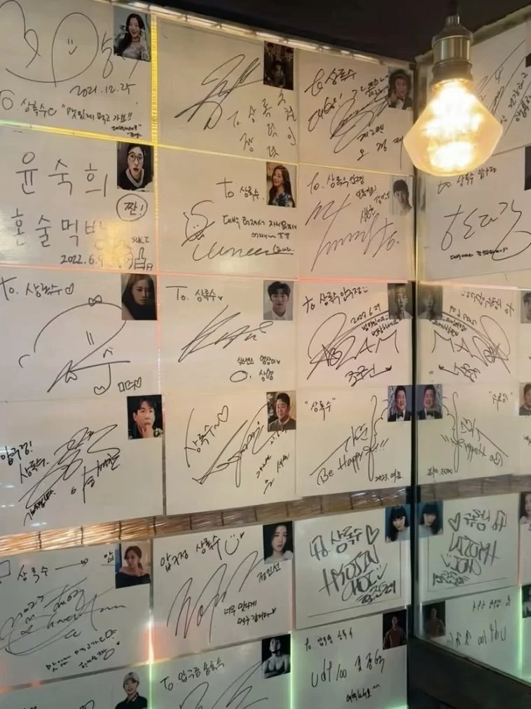 Once inside, you immediately notice the wall of celebrity autographs. Actors, singers, comedians—this isn’t curated decor; it’s organic proof that this place has been consistently popular for years. It also explains why reservations are strongly recommended, especially during dinner hours.